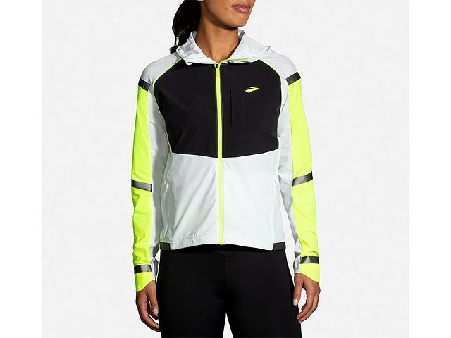 Stay visible and comfortable in this women’s running jacket. Lightweight, breathable fabric resists wind and water while targeted reflectivity increases visibility.